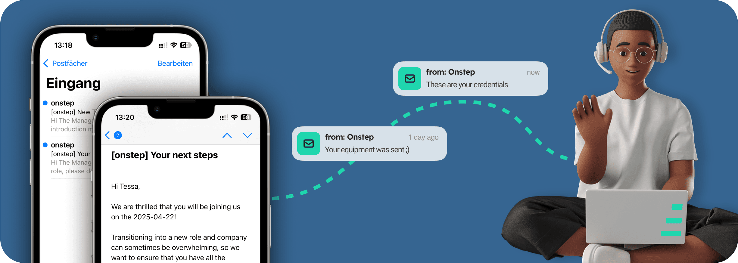 We understand that onboarding is all about personalization, and our tool is designed to support that. Within Onstep you can define variables to ensure personalized communication tailored to each new hire.